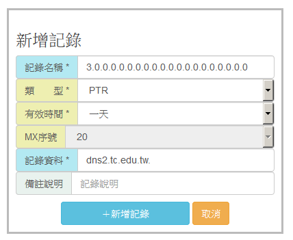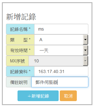 [台中教網DNS管理系統] 各類型紀錄如何設定?